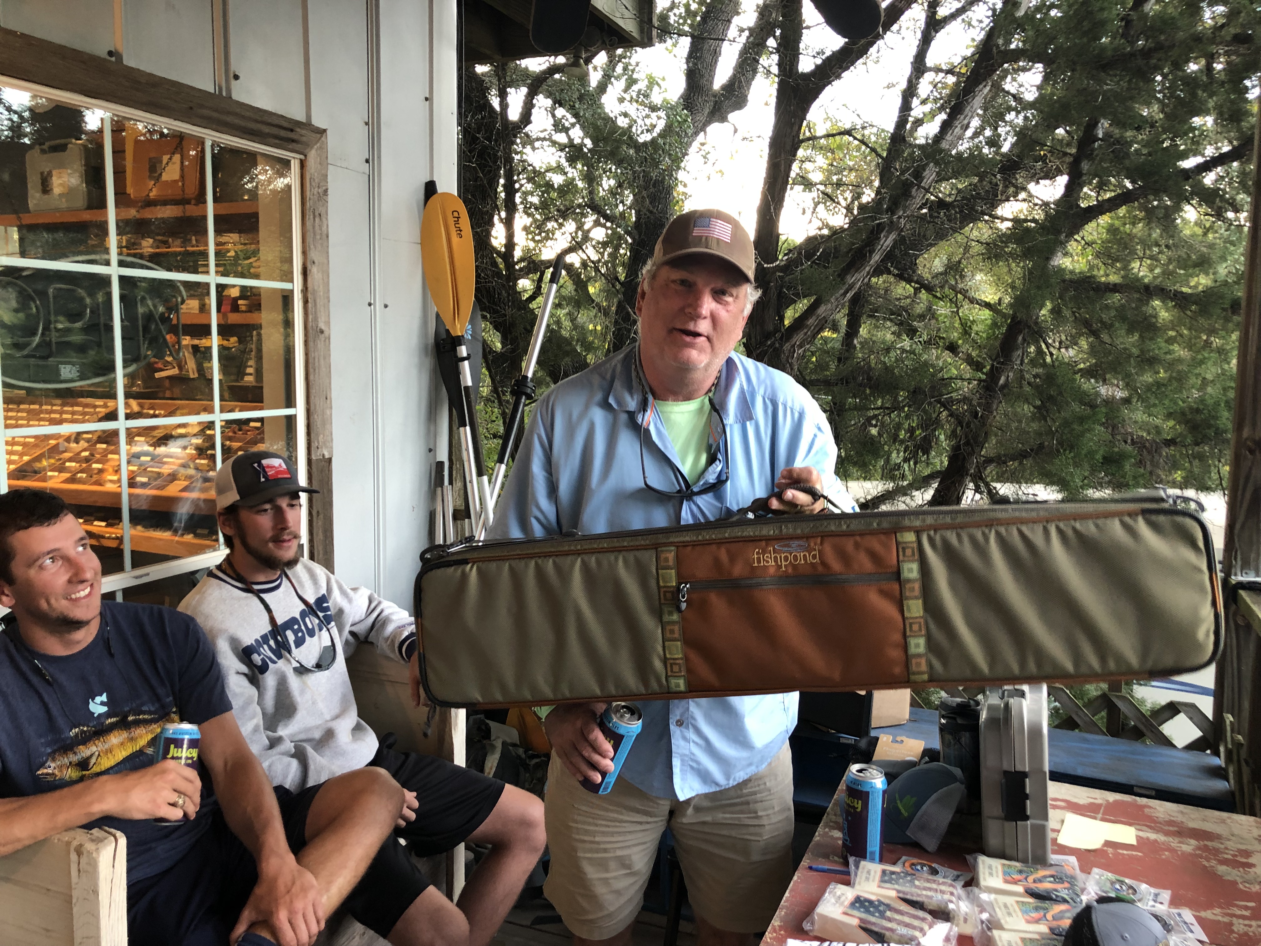 We want to thank our many sponsors to include, Action Anglers— ½ day Float trip on the Guadalupe, Trouthunter tippet, Montana Fly company fly box ::: Living Waters—Fishpond Rod Case, hat and stickers::: Echo rods, —:::Umpqua—Back Pack, Patagonia gloves, Montana Fly Company fly box, t-shirt, hat:::Gruene Outfitters—::: Lake Austin Ales— iced tea:::Water Works Lamson and Temple Fork for their continued support of our tournament.